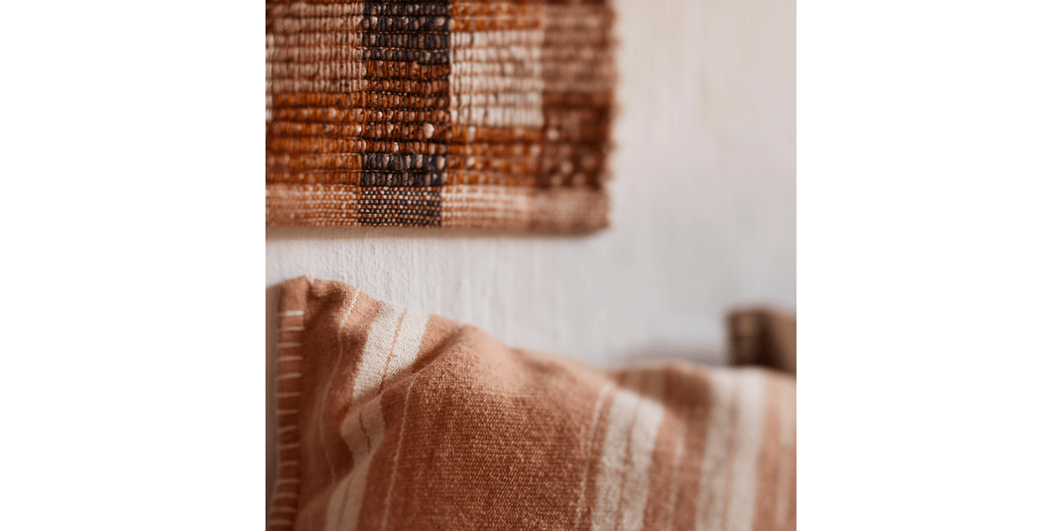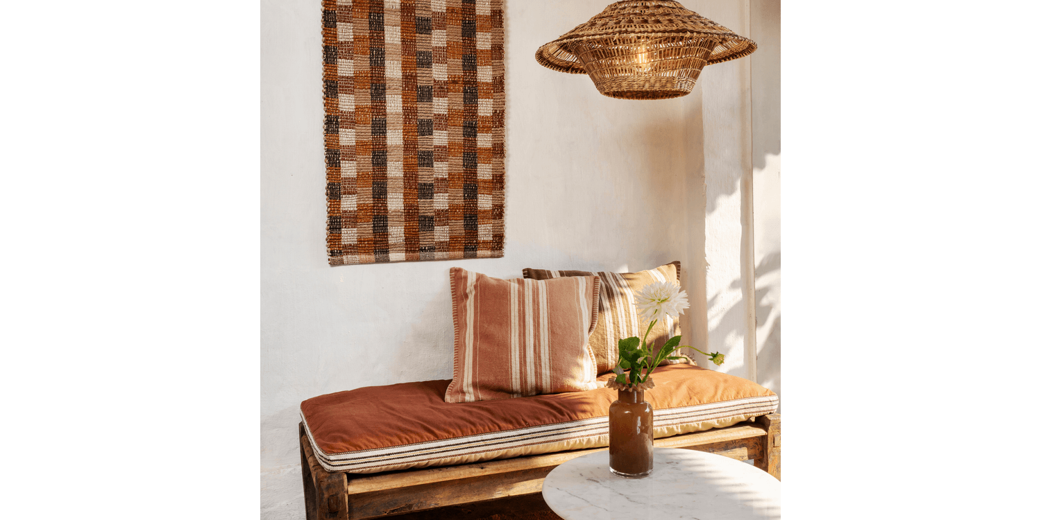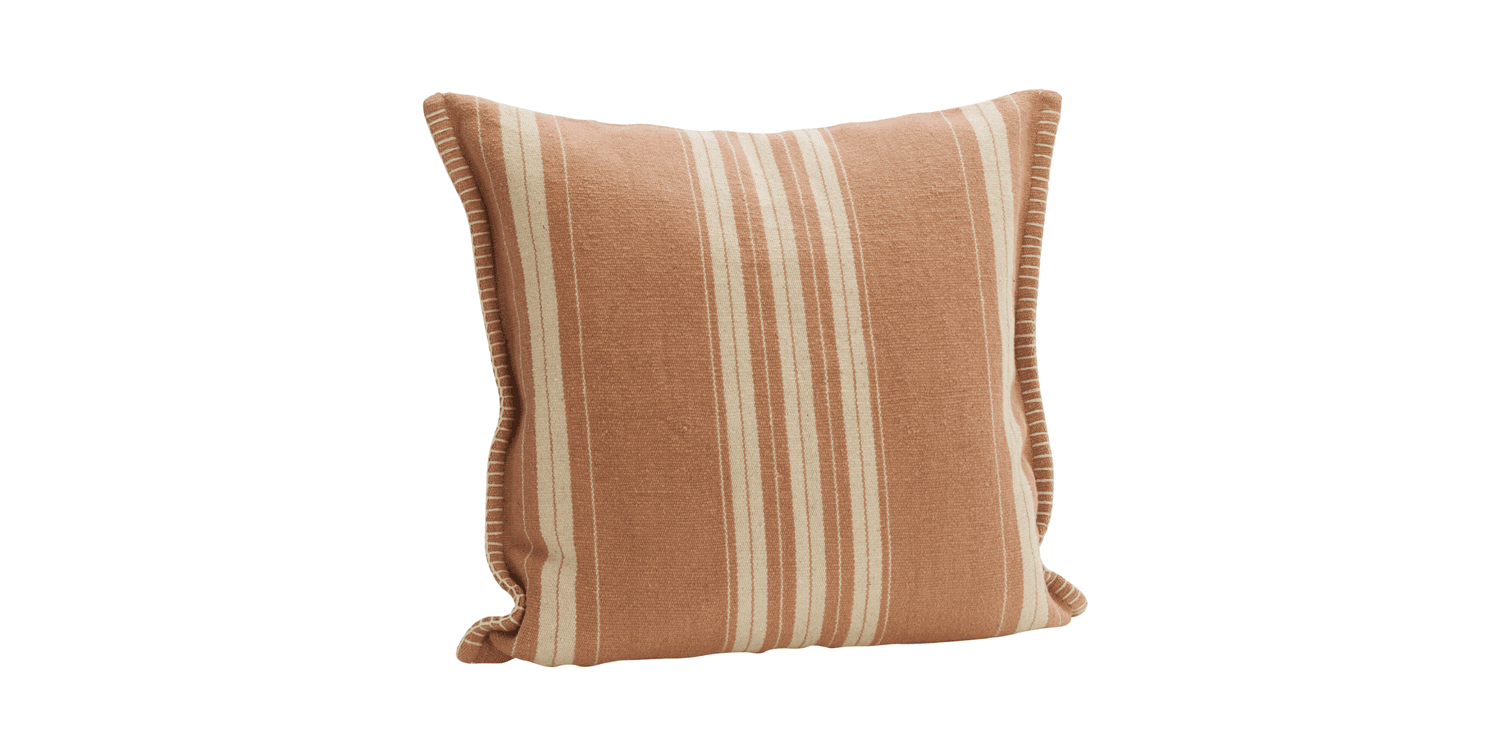 With its striped pattern and rustic, handcrafted character, this cushion cover brings warmth, depth and a relaxed ease to any space. The texture feels gently raw yet comfortably soft, giving it a timeless, welcoming presence on a sofa, armchair or bed. Suitable for both indoor use and covered outdoor areas, it layers beautifully in natural interiors and pairs effortlessly with plain cushions and throws.