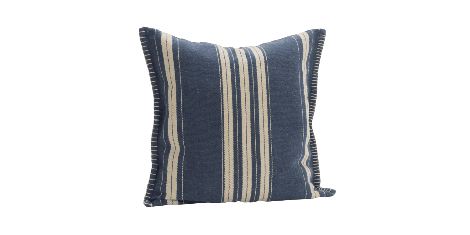 This Handwoven Navy Striped Cushion, by Madam Stoltz, brings an easy, coastal feel to your space with its classic stripe and tactile, handwoven texture. Made by skilled artisans, each cushion has subtle variations that make it unique, each perfect for layering on a sofa, armchair, or bed.