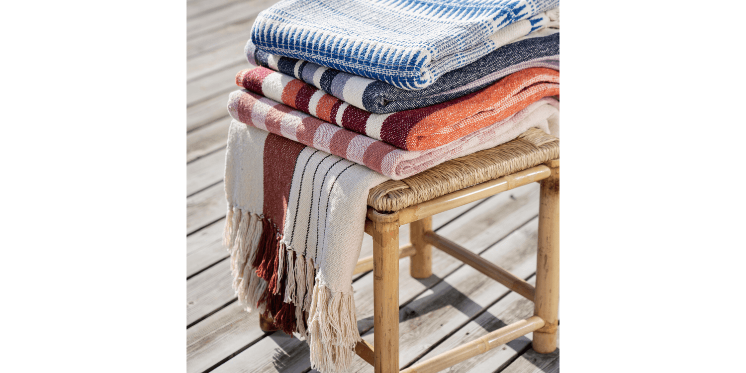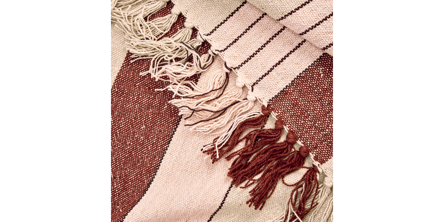 The Recycled Almond & Warm Pink Cotton Throw, is designed to bring warmth and calm to your home. Crafted in India, it is a sustainable choice for your home that fits easily over a sofa, armchair or over the end of a bed.