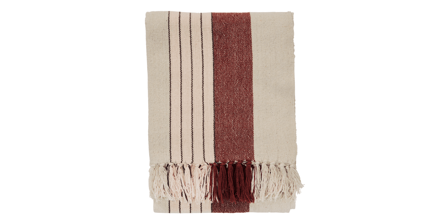 The soft texture feels gentle against the skin and creates a calm, warm and harmonious colour expression in any room. Subtle tones work together to frame your favourite corner, while classic fringes underline the handcrafted look and add movement when draped or folded.