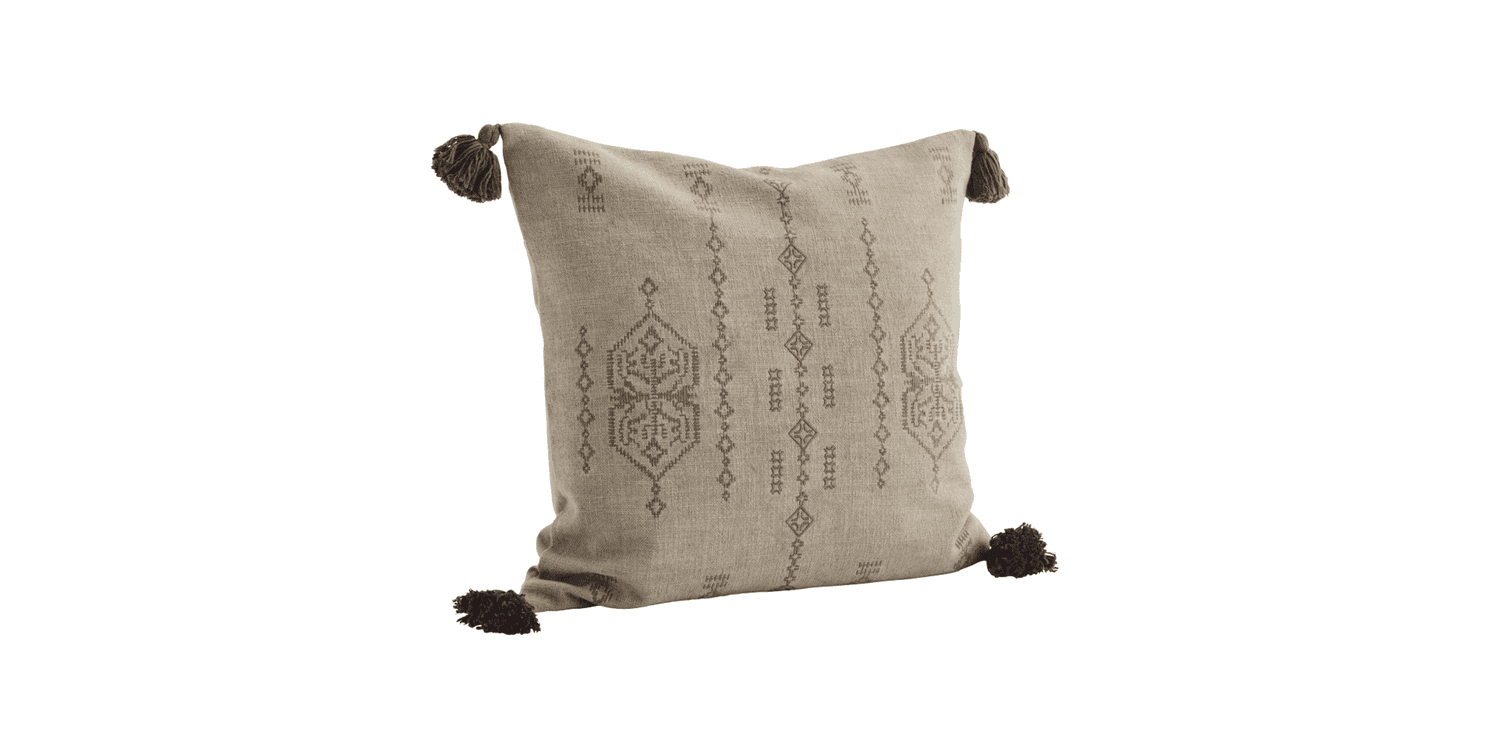 This Recycled Embroidered Taupe & Brown Square Cushion with Tassels, is handmade and carefully embroidered. Inspired by travels and tradition, Madam Stoltz creates soulful homeware that fuses handcrafted global artistry with Scandinavian serenity.