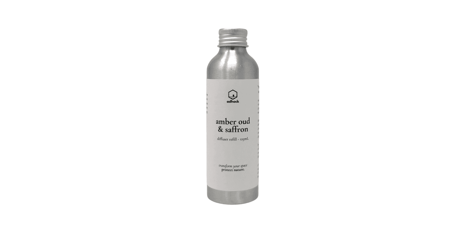 Top up your favourite diffuser Adhock Homeware diffuser with our Amber Oud & Saffron Reed Diffuser Refill, a rich, luxurious fragrance that fills your home with warmth and depth.