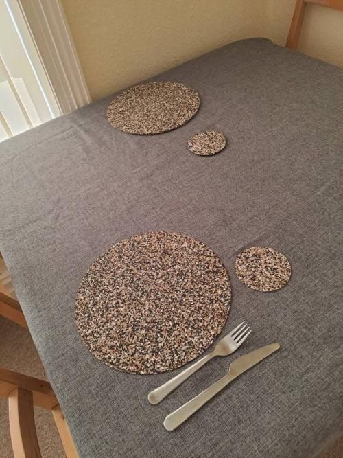 Ordered the smoked cork coasters and round placemats for hot pots and dishes. Seller was communicative and shipped the items quickly. The smoked cork is beautiful - highly recommend for someone looking for a nicer and more eco-friendly option to cork table products.