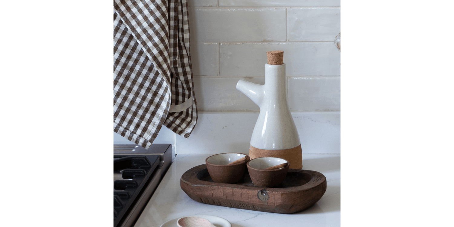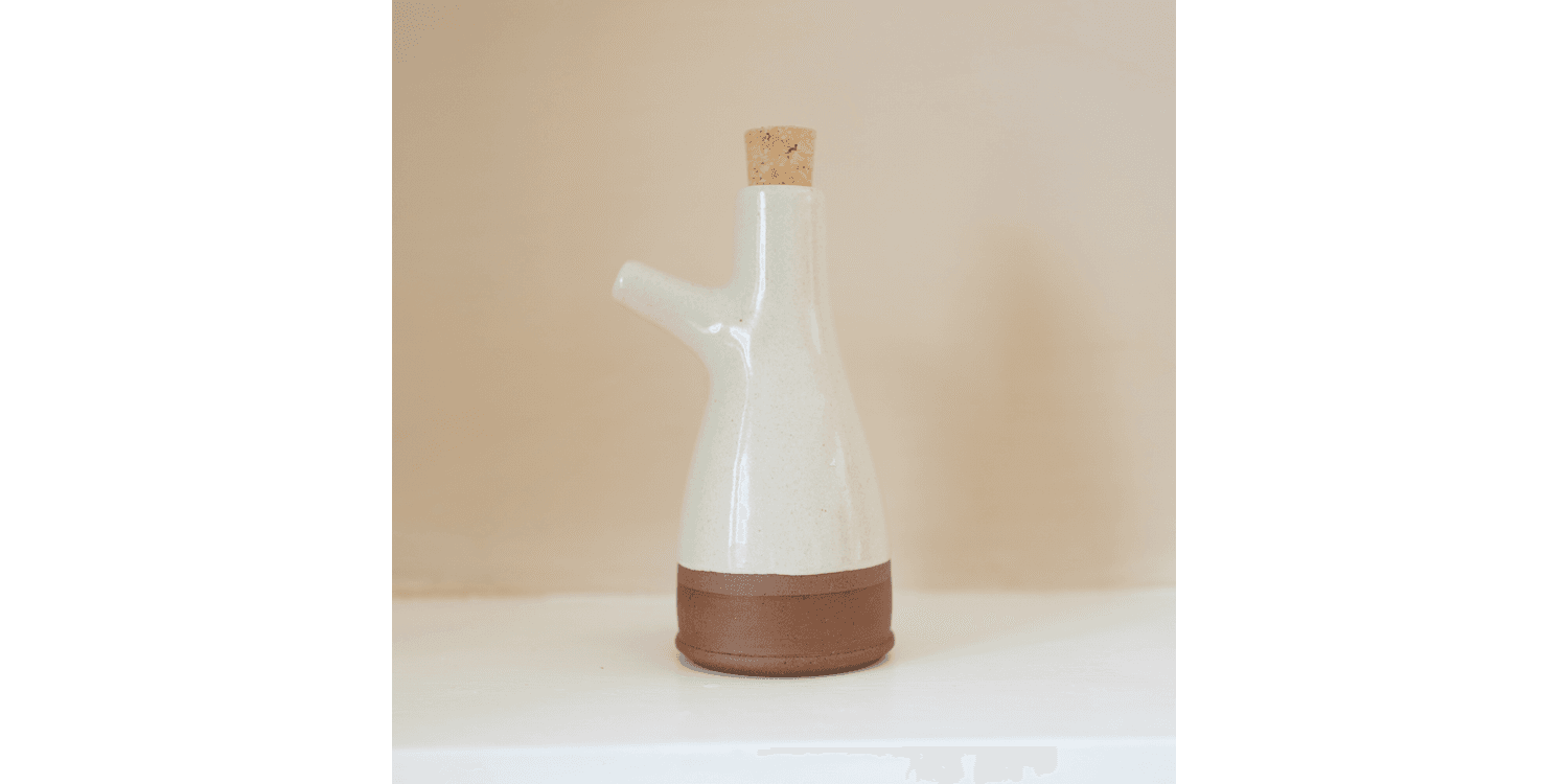 This Handmade Stoneware Oil Pourer Bottle is a simple, beautiful way to keep your cooking oils close at hand. Made by hand by a small artisan pottery in Southern India, this Oil Pourer Bottle is designed in the UK, and created under a Fair Trade scheme to help sustain and grow the community of artisan makers.