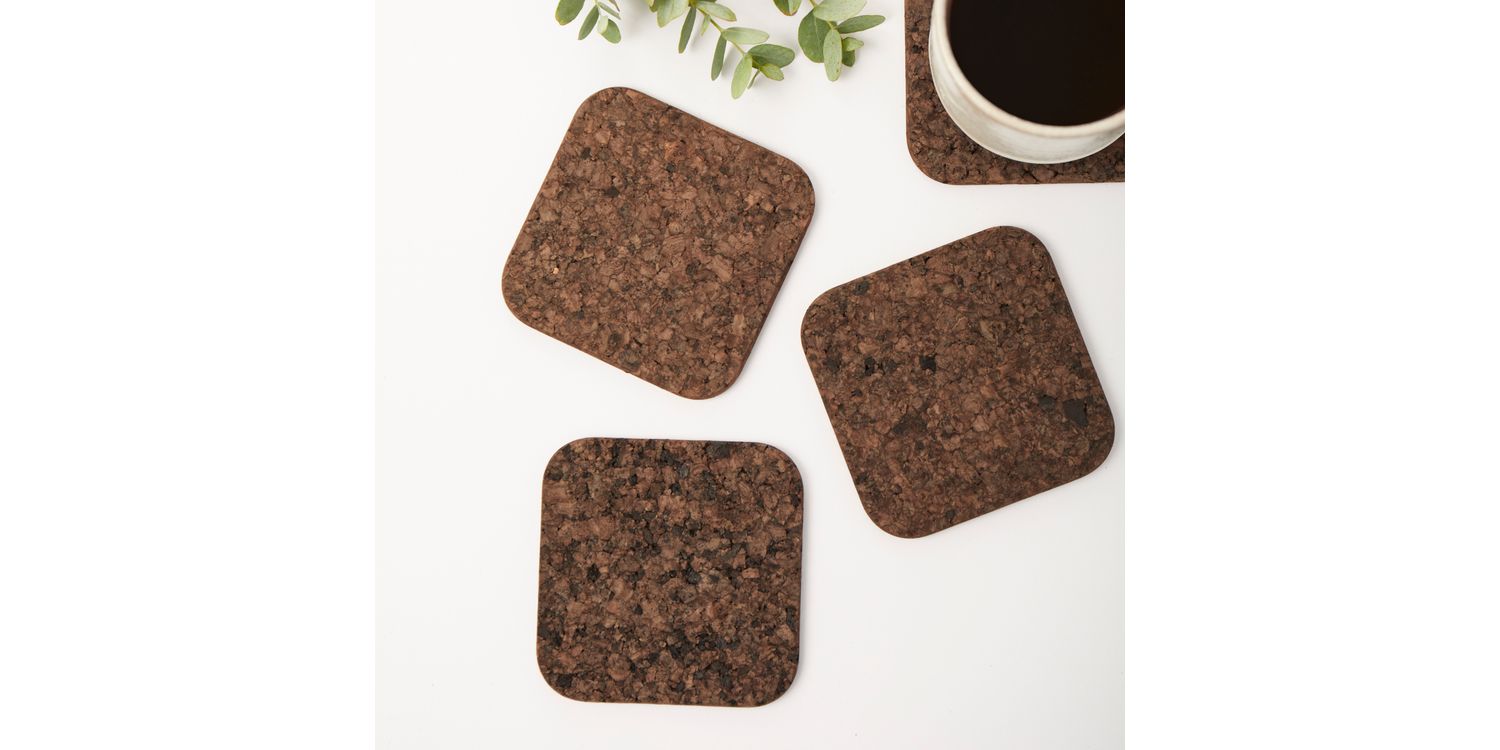 Coming in sets of 4, the beautiful Liga Square Smoked Cork Coaster Set, is made from sustainably sourced cork that's been naturally smoked. Cork is harvested once every 9-12 years, without damaging or cutting down a single tree, meaning our coasters and placemats enhance your home, while allowing endangered wildlife to keep theirs.